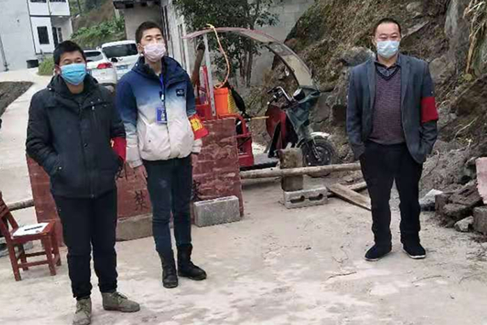 化学171班蒲鑫家住四川省绵阳市桑枣镇云丰村,看见家乡村口设立了疫情检查卡点,身为党员的他主动找到村书记,报名做了执勤人员。每天在村口记录进村车辆、人员信息并测温,对路面消毒,宣传防疫措施。在邻镇发现疑似病例的情况下,他严防死守,加强管控措施,耐心劝返外地车辆,全力以赴为家乡防控疫情贡献着力量。